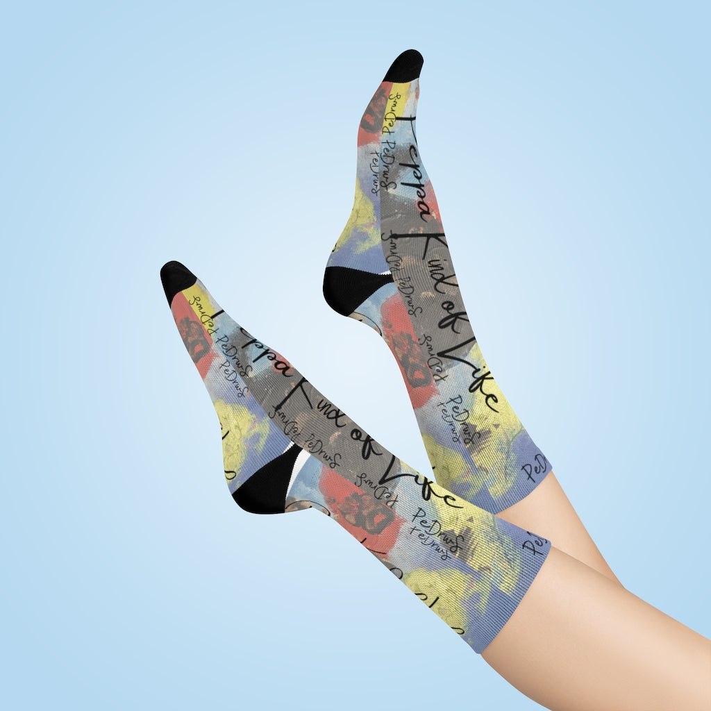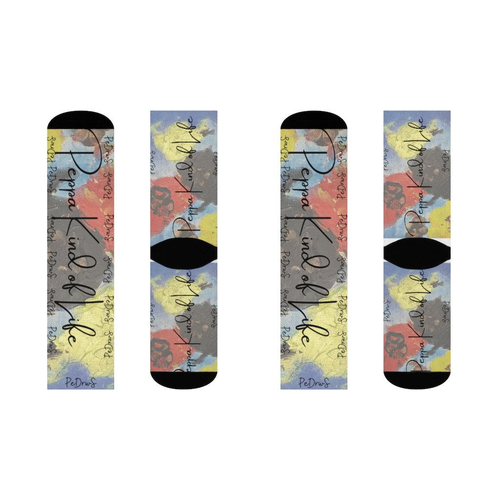 Available in three different sizes, these sublimation socks are ideal for displaying some personality around the ankles. They’re all over print, so any custom artwork won’t be cut short in terms of spacing. The bottoms are cushioned for exceptional comfort. The composition is 72% polyester, 14% cotton, 7% nylon, 6% rubber, and 1% spandex.